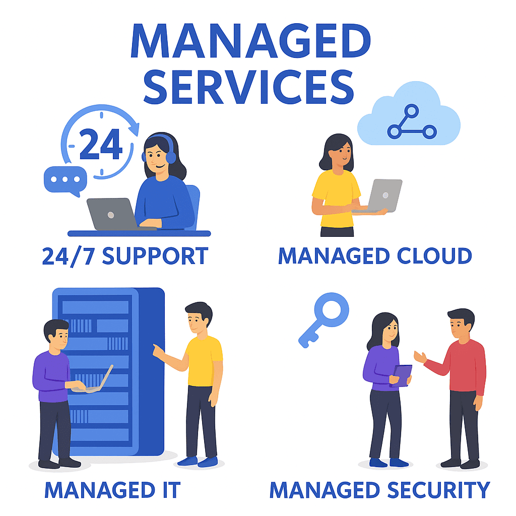 Our Managed services offer businesses a proactive and cost-effective approach to IT support and infrastructure management. From 24/7 monitoring and helpdesk support to cloud optimization, cybersecurity, and managed IT operations, we ensure your systems run efficiently and securely. Our experts act as an extension of your team, helping you reduce downtime, improve compliance, and focus on core business goals while we handle the complexities of your IT environment. With tailored service plans and enterprise-grade tools, we empower your organization with reliable, scalable, and future-ready managed service solutions.