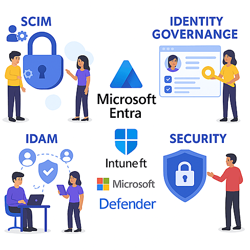 We provide end-to-end Identity and Access Management (IDAM) and security solutions using Microsoft Entra, Active Directory, Intune, and Microsoft Defender. Our services span SCIM-based provisioning, identity governance, mobile device management (MDM), and enterprise-grade security. Whether you're looking to automate user lifecycle management, enforce conditional access, secure endpoints, or gain deep visibility into threats, our consulting expertise ensures a secure and compliant digital workplace. By integrating powerful tools like Intune for MDM and Microsoft Defender for advanced threat protection, we help you build a resilient and well-governed identity infrastructure tailored to your business needs